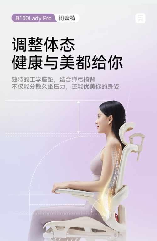 這便是 西昊B100 Lady Pro 的誕生背景——行業(yè)首款從女性身體結(jié)構(gòu)、體態(tài)行為與久坐場(chǎng)景出發(fā)打造的 女性專屬健康久坐人體工學(xué)電腦椅。