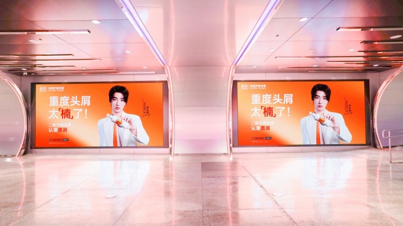 一是品牌代言廣告選擇了落地杭州湖濱銀泰in77光影藝術(shù)長廊——這里作為全國核心商圈,不僅是年輕消費群體的聚集地,更是品牌實力的“展示窗口”,強化了品牌影響力;二是大屏以“1%二硫化硒去屑洗發(fā)水全國銷量第一”為核心信息,并搭配林秋楠的專業(yè)形象,完成了“核心場景曝光 + 權(quán)威認知傳遞 + 用戶信任建立”的三重營銷目標。