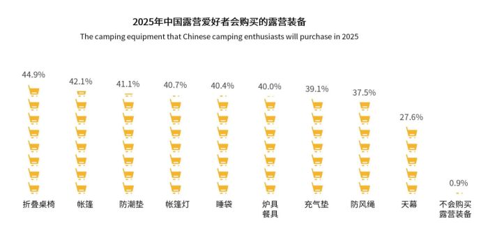 露營(yíng)行業(yè)的迅猛增長(zhǎng),帶動(dòng)戶(hù)外裝備從“專(zhuān)業(yè)化小眾”向“生活化大眾”不斷轉(zhuǎn)型,露營(yíng)睡袋這一裝備作為40.4%的露營(yíng)愛(ài)好者會(huì)選擇購(gòu)買(mǎi)的裝備,也正不斷走入大眾視野,經(jīng)歷著從“功能滿(mǎn)足”到“體驗(yàn)升級(jí)”的轉(zhuǎn)型。