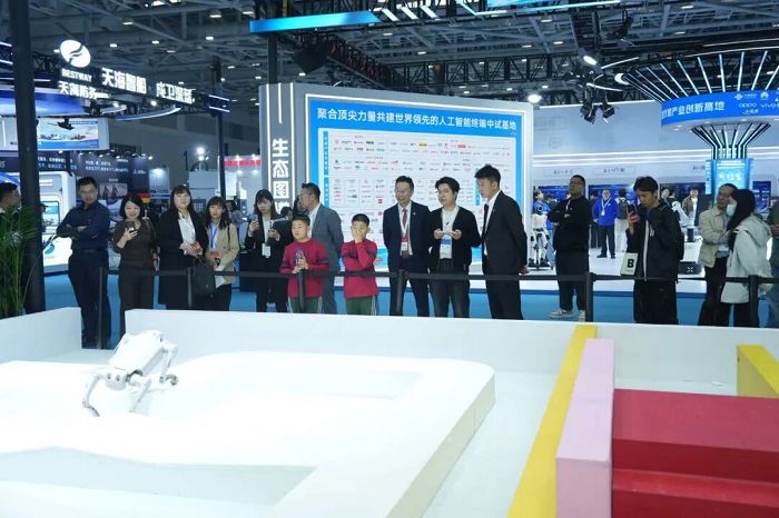 其中,珠海展位延續(xù)南京展爆款設(shè)計(jì)的“全地形跑酷賽道”人氣爆棚,冠軍級(jí)機(jī)器狗“鋼镚L1”在模擬狹窄彎道、連續(xù)坡面、密集障礙及模擬樓梯等復(fù)雜地形中穩(wěn)健穿梭,精準(zhǔn)完成各類高難度動(dòng)作,淋漓盡致地展現(xiàn)了卓越的運(yùn)動(dòng)控制性能與強(qiáng)大的復(fù)雜環(huán)境適應(yīng)能力,引得現(xiàn)場(chǎng)觀眾駐足圍觀、拍照喝彩。