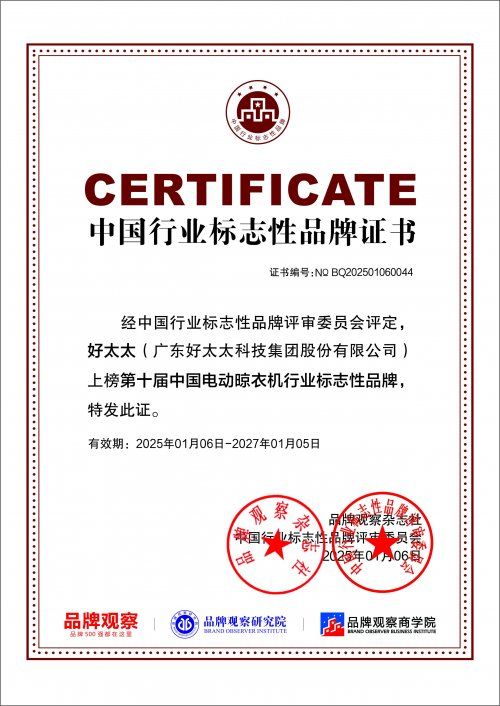 如今,好太太已構(gòu)建起智能晾衣機、智能鎖為核心等多元產(chǎn)品的智能家居生態(tài),憑借ISO9001、ISO14001等多項體系認證,為用戶打造充滿人文關(guān)懷的智能生活空間。未來,好太太將繼續(xù)以“成為全球領(lǐng)先的智能家居企業(yè)”為愿景,深耕技術(shù)創(chuàng)新,拓展服務(wù)邊界,讓更多家庭享受到科技帶來的美好生活。