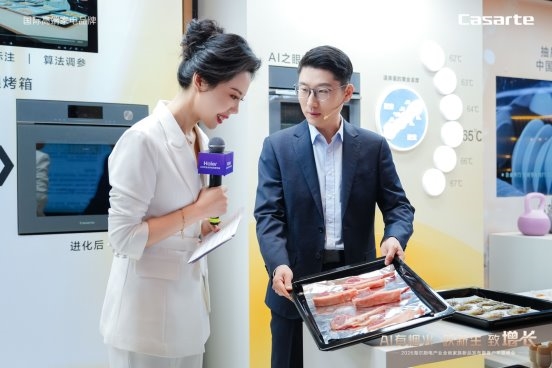 在這里,用戶不僅能直觀感受柜電一體的設計,還能沉浸式體驗前沿智能科技帶來的便捷。例如本次會上的卡薩帝全嵌致境系列,煙機機身與油杯能完全隱于櫥柜,通過搭載“AI之眼”還實時看鍋調火、智能防溢;“AI之眼”冰箱則能帶來智能膳食服務,根據(jù)食材推薦定制菜譜,一鍵聯(lián)動煙機、蒸烤箱等智慧烹飪,大幅降低日常烹飪門檻。不止于此,卡薩帝還帶來了原創(chuàng)中島升降油煙機、全球最先進的全域加熱電磁灶、不擋視線不擋鍋的三折疊煙機等一系列創(chuàng)新產品,共同構建兼具高效烹飪與社交互動的高端廚房場景體驗。