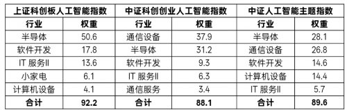 表1:三只人工智能相關指數(shù)前五大行業(yè)分布對比(申萬二級)