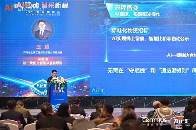 河南省公路工程局供應(yīng)鏈公司總經(jīng)理莊超在《AI驅(qū)動,新一代陽光智采共贏新思路》分享中,以“正念共贏”為核心闡述AI如何重塑采購生態(tài), AI賦能采購正將集中采購從利益“博弈場”重塑為協(xié)同“共贏圈”。通過全流程透明化與智能風(fēng)控,AI不僅筑牢了廉政防線,更賦能年輕從業(yè)者從執(zhí)行者成長為戰(zhàn)略引領(lǐng)者,在“陽光采購”中實(shí)現(xiàn)個(gè)人與企業(yè)的共同價(jià)值提升。