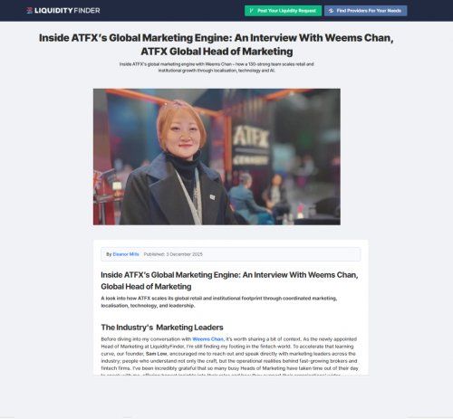 在全球金融科技競(jìng)爭(zhēng)日益激烈的今天,ATFX憑借穩(wěn)健的合規(guī)布局、領(lǐng)先的交易技術(shù)和深入人心的品牌戰(zhàn)略,持續(xù)領(lǐng)跑行業(yè)。在剛剛結(jié)束的2025年倫敦金融峰會(huì)(FMLS:25)上,ATFX全球市場(chǎng)營(yíng)銷(xiāo)與品牌負(fù)責(zé)人Weems Chan接受行業(yè)媒體LiquidityFinder獨(dú)家專訪。作為L(zhǎng)iquidityFinde全新“行業(yè)營(yíng)銷(xiāo)領(lǐng)袖”系列專訪之作,本次對(duì)話首次系統(tǒng)性揭示了ATFX如何通過(guò)高度協(xié)同的全球營(yíng)銷(xiāo)體系、深度本地化策略、前沿技術(shù)應(yīng)用及卓越領(lǐng)導(dǎo)力,穩(wěn)步擴(kuò)大其零售與機(jī)構(gòu)業(yè)務(wù)的全球版圖。