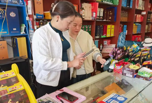 (圖為客戶經(jīng)理與郵儲銀行員工上門為客戶開通聚合支付業(yè)務(wù))