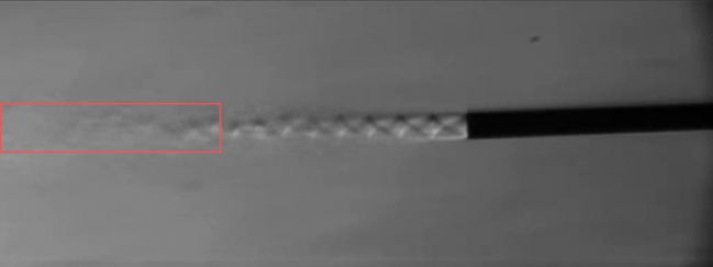 本實驗利用中科君達視界自研的千眼狼高速攝像機(Revealer High-speed camera),在90,000fps幀率下結(jié)合紋影法,成功觀測了1馬赫超音速噴射氣流。清晰記錄了從噴口清晰的馬赫環(huán)結(jié)構(gòu)、中部的剪切層湍流混合,到尾部的氣流擺動全過程,為航空發(fā)動機設計提供了可視化依據(jù)。