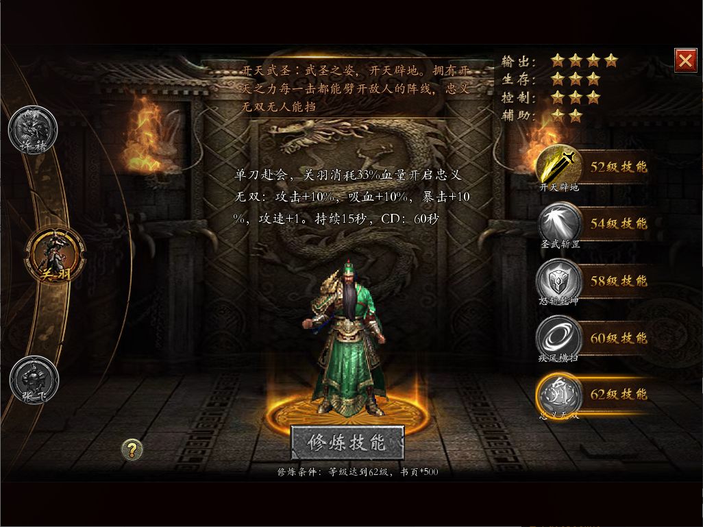 達到52級后,你將不再只是“戰(zhàn)士”、“法師”或“道士”——你將化身張飛的勇猛,體驗丈八蛇矛下敵人麻痹的絕望;你將繼承趙云的忠勇,以最高攻擊為代價換取超強的PK能力;你將手握呂布的方天畫戟,將烈火與逐日劍法推向極致;你將如典韋般死戰(zhàn)不休,血染征袍時爆發(fā)出驚人的力量;你將似許諸般橫沖直撞,野蠻沖撞橫掃八方;你將以關圣帝君的姿態(tài),開啟真正的無雙模式。