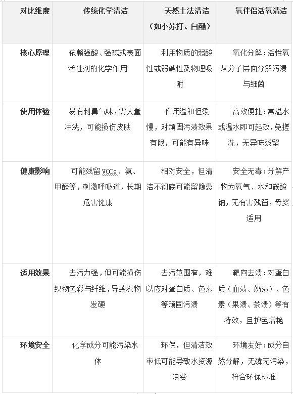 在辭舊迎新的清潔儀式中,選擇何種方式不僅關(guān)乎“一時(shí)之凈”,更決定了家人全年的健康基礎(chǔ)。為了清晰呈現(xiàn)活氧清潔與傳統(tǒng)方式的根本差異,我們可以從以下五個(gè)維度進(jìn)行系統(tǒng)性對(duì)比: