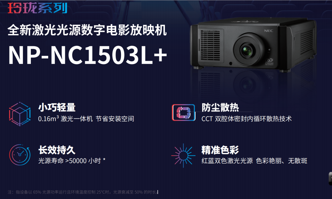 同時(shí),NEC電影機(jī)以“輕小久省”的運(yùn)營(yíng)優(yōu)勢(shì)直擊影院痛點(diǎn):部分機(jī)型體積僅0.16m3,輕量化設(shè)計(jì)適配各類(lèi)影廳吊裝,尤其適合無(wú)機(jī)房場(chǎng)景;搭配可反復(fù)清洗的金屬濾網(wǎng),無(wú)需頻繁更換,僅需定期清潔即可重復(fù)使用,從安裝到維護(hù)全方位節(jié)省人工與物料成本,讓影院將更多精力投入到提升觀眾體驗(yàn)中。