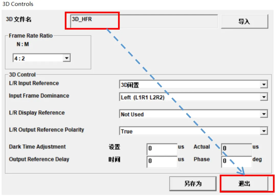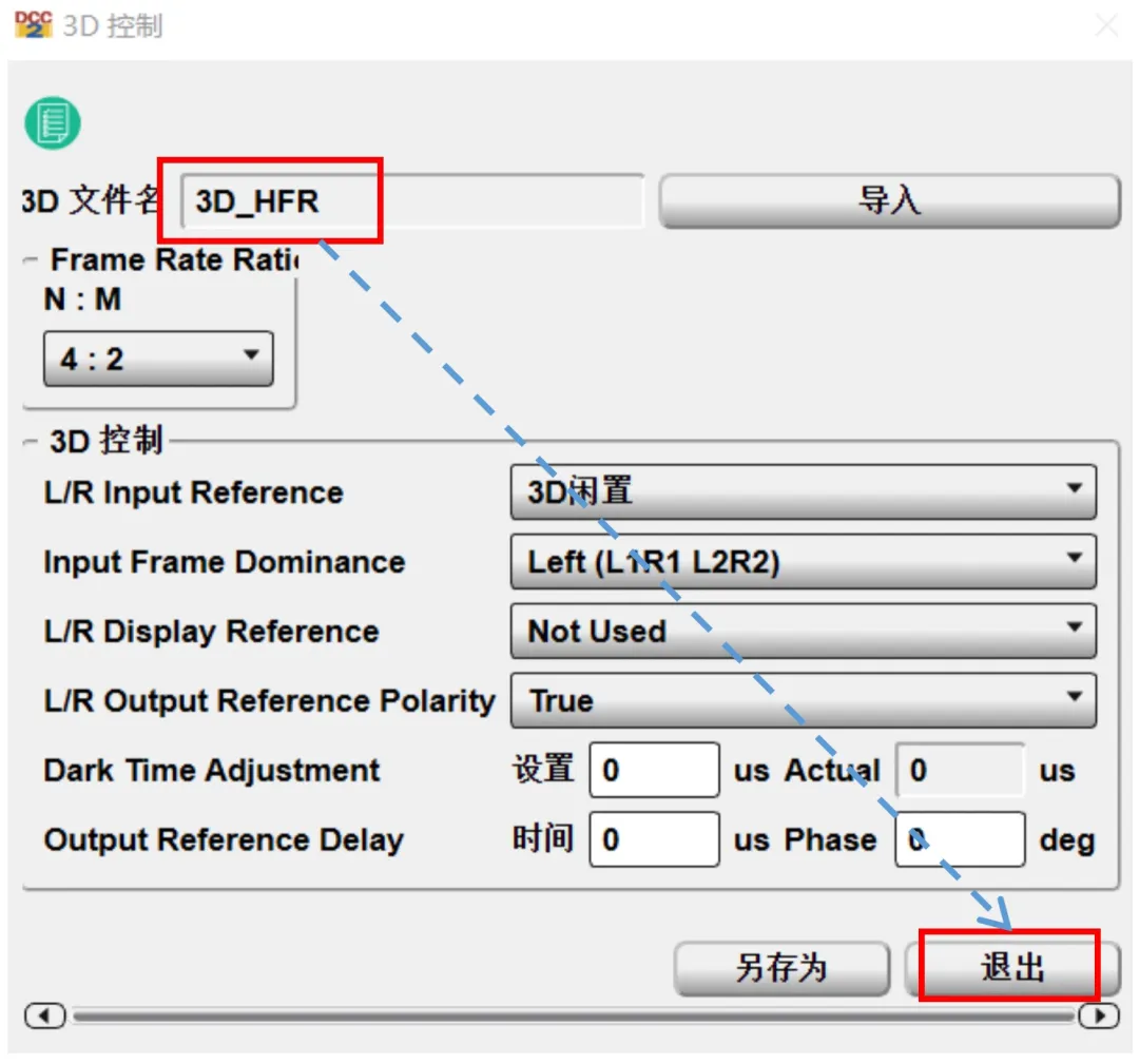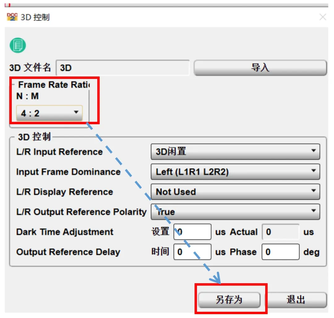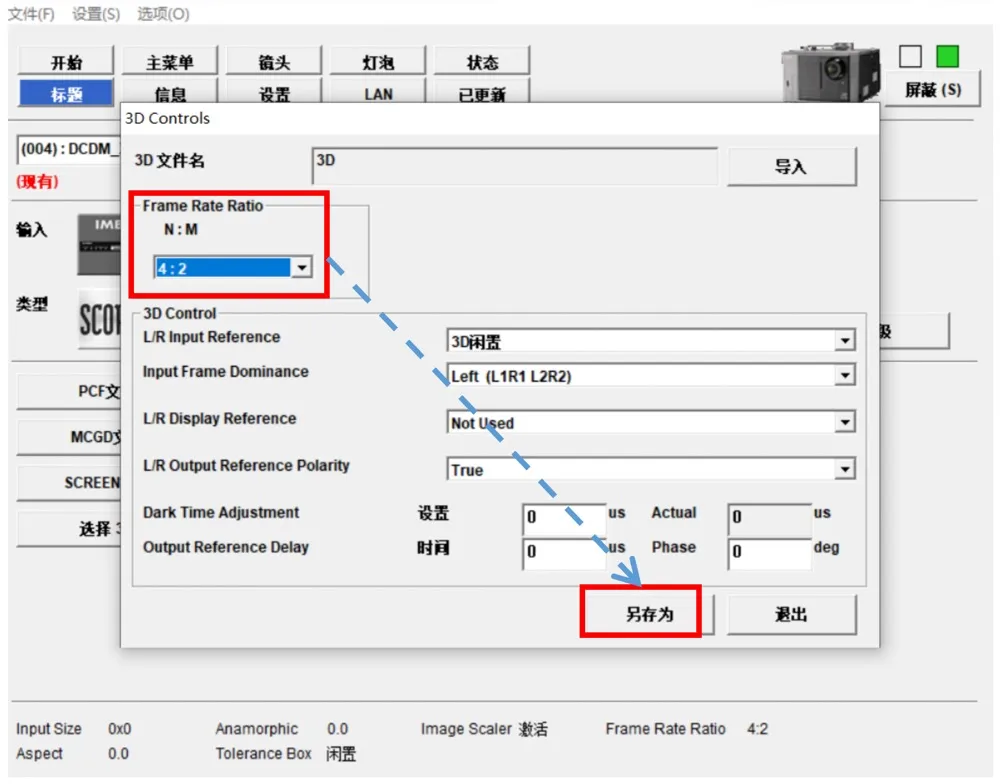 5、進(jìn)入3D設(shè)置界面,將N:M設(shè)置成4:2(單機(jī)播放48幀3D);3D控制各項(xiàng)參數(shù),參照不同3D設(shè)備品牌提供的要求進(jìn)行設(shè)置。