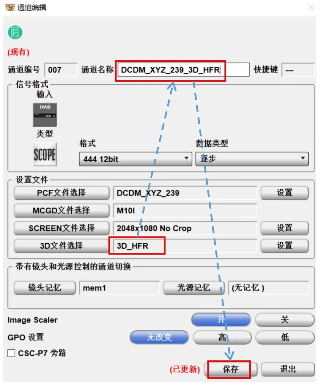 8、檢查通道文件,確認(rèn)3D文件已經(jīng)更新,更改通道名稱(chēng)后,單擊“保存”,保存通道。