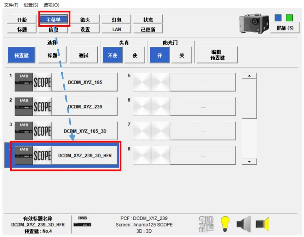 8、進(jìn)入“主菜單”,選擇高幀率新通道,測(cè)試放映。