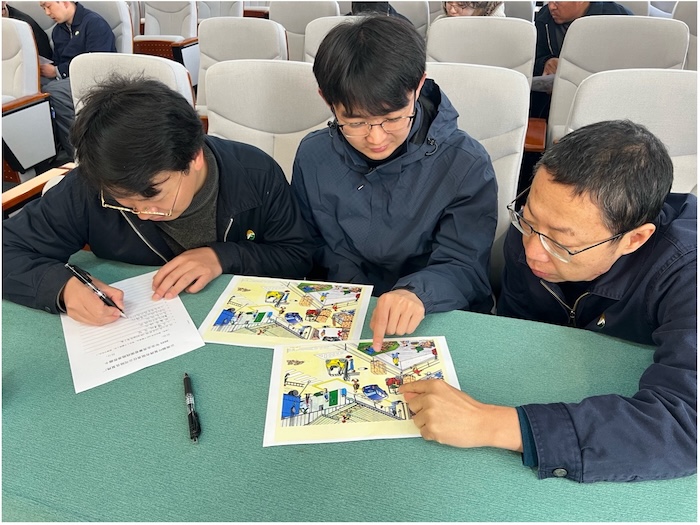 緊隨其后的看圖找隱患環(huán)節(jié),將競賽推向一個(gè)小高潮。大屏幕上呈現(xiàn)出一幅精心設(shè)計(jì)的復(fù)合場景圖片,涵蓋生產(chǎn)作業(yè)、消防設(shè)施、電氣設(shè)備、行為規(guī)范等多領(lǐng)域潛在風(fēng)險(xiǎn),預(yù)設(shè)100個(gè)隱患點(diǎn)。各參賽隊(duì)伍在20分鐘內(nèi)集中研判、高效討論:“這里安全通道標(biāo)識(shí)模糊!”“那個(gè)配電箱門未關(guān)閉!”“操作人員未戴防護(hù)手套!”……隊(duì)員們聚精會(huì)神,不放過任何一個(gè)細(xì)節(jié)。該環(huán)節(jié)既考驗(yàn)參賽人員對安全標(biāo)準(zhǔn)的熟悉程度,更錘煉了細(xì)節(jié)觀察、全面思考與風(fēng)險(xiǎn)辨識(shí)的專業(yè)能力,強(qiáng)化了“隱患無處不在、防范不可松懈”的風(fēng)險(xiǎn)意識(shí)。