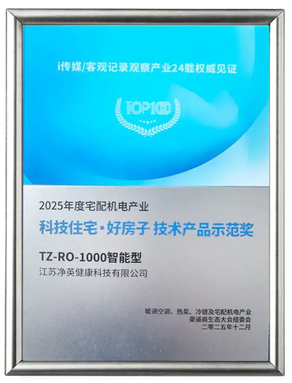 TZ-RO-1000智能型凈水器(即將發(fā)布產(chǎn)品)斬獲"科技住宅·好房子技術(shù)產(chǎn)品示范獎(jiǎng)",標(biāo)志著技術(shù)實(shí)力獲得權(quán)威認(rèn)證,精準(zhǔn)契合了 “好房子” 時(shí)代對(duì)健康家居的核心需求。
