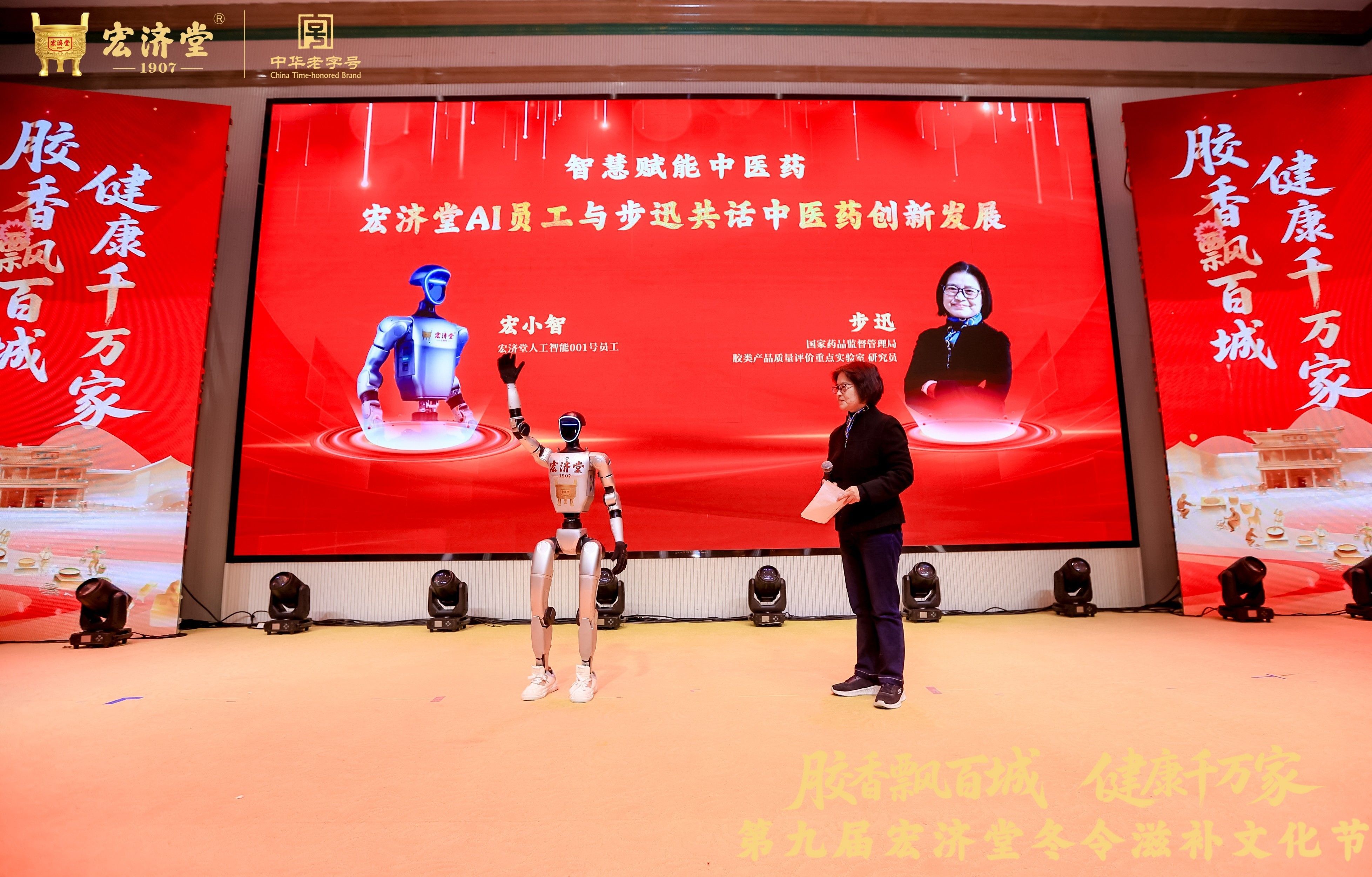 開(kāi)幕式上的多項(xiàng)重磅成果集中落地,充分彰顯了宏濟(jì)堂以創(chuàng)新驅(qū)動(dòng)產(chǎn)業(yè)升級(jí)的引領(lǐng)力,其中數(shù)智技術(shù)與國(guó)藥的深度融合成為一大亮點(diǎn)。國(guó)家藥品監(jiān)督管理局膠類(lèi)產(chǎn)品質(zhì)量評(píng)價(jià)重點(diǎn)實(shí)驗(yàn)室研究員步迅與宏濟(jì)堂制藥人工智能001號(hào)員工——“宏小智”展開(kāi)了一場(chǎng)別開(kāi)生面的對(duì)話,共同解讀宏濟(jì)堂阿膠的品質(zhì)及宏濟(jì)堂在推動(dòng)阿膠產(chǎn)業(yè)發(fā)展中做出的貢獻(xiàn)。“每一張?bào)H皮,都必須經(jīng)過(guò)DNA分子鑒定?!辈窖傅慕庾x道出了宏濟(jì)堂阿膠金牌品質(zhì)的根基。為破解過(guò)去阿膠行業(yè)“雜皮混用”的亂象,宏濟(jì)堂率先與山東省農(nóng)業(yè)科學(xué)院生物技術(shù)研究中心聯(lián)合成立“中藥源性分子鑒定技術(shù)研究中心”,將DNA檢測(cè)技術(shù)引入阿膠生產(chǎn),從源頭上保證驢皮原料的真實(shí)可靠,實(shí)現(xiàn)原料張張檢測(cè)、成品批批把關(guān)、阿膠盒盒溯源的全鏈條質(zhì)量管控,以數(shù)智賦能筑牢品質(zhì)根基。