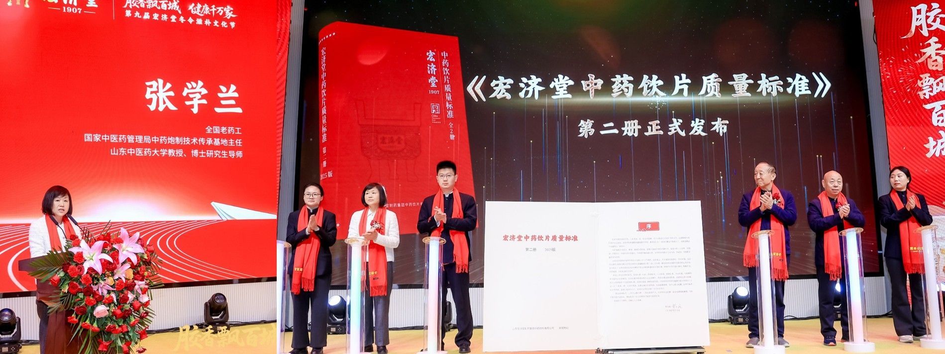 作為產(chǎn)業(yè)標(biāo)準(zhǔn)化發(fā)展的重要突破,《宏濟(jì)堂中藥飲片質(zhì)量標(biāo)準(zhǔn)》第二冊(cè)在開(kāi)幕式上正式發(fā)布。該標(biāo)準(zhǔn)在首冊(cè)順利實(shí)施并獲得國(guó)醫(yī)大師張大寧等專(zhuān)家和行業(yè)認(rèn)可的基礎(chǔ)上,新增50種中藥材及其94種飲片的質(zhì)量標(biāo)準(zhǔn),不僅對(duì)藥材與飲片實(shí)施了比國(guó)家藥典更嚴(yán)、更精準(zhǔn)的成分管控,運(yùn)用特征圖譜等技術(shù)鎖定飲片關(guān)鍵質(zhì)量屬性,更系統(tǒng)建立了28種炮制輔料的質(zhì)量標(biāo)準(zhǔn),彌補(bǔ)了中國(guó)藥典在炮制輔料標(biāo)準(zhǔn)上的空白。這一標(biāo)準(zhǔn)從“藥材”到“輔料”再到“飲片”,構(gòu)建起更完整、更可靠的質(zhì)量閉環(huán)。全國(guó)老藥工、國(guó)家中醫(yī)藥管理局中藥炮制技術(shù)傳承基地主任、山東中醫(yī)藥大學(xué)教授、博士研究生導(dǎo)師張學(xué)蘭,山東省名中醫(yī)藥專(zhuān)家、山東省中醫(yī)藥研究院研究員靳光乾,泰山學(xué)者、山東中醫(yī)藥大學(xué)藥學(xué)院原院長(zhǎng)、博士研究生導(dǎo)師田景振等專(zhuān)家上臺(tái)發(fā)布。該標(biāo)準(zhǔn)的發(fā)布,既是宏濟(jì)堂“做更受百姓信賴(lài)的放心藥、療效藥、安全藥”的公開(kāi)承諾,更是推動(dòng)中藥飲片行業(yè)整體邁向高標(biāo)準(zhǔn)、規(guī)范化發(fā)展的“宏濟(jì)堂擔(dān)當(dāng)”。
