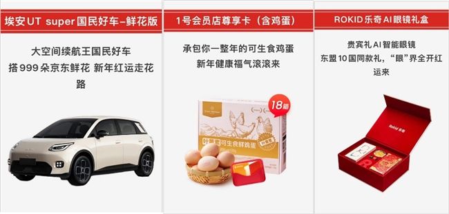 京東為本屆跨晚準備的福利陣容堪稱“頂配”,實物好禮覆蓋衣食住行全場景。不僅有坐擁浪漫與實用的國民好車——搭載一車京東鮮花的埃安UT super、承包全年的1號會員店可生食雞蛋、象征富貴開年的周大福黃金五件套、宿遷非遺美食七鮮私廚黃狗豬頭肉,還有科技感拉滿的ROKID樂奇AI眼鏡禮盒、智元靈犀X2機器人萬能管家,更有價值約25萬元的“2026樣樣紅”終極大獎直接送到家,讓開年好運滿載上門!