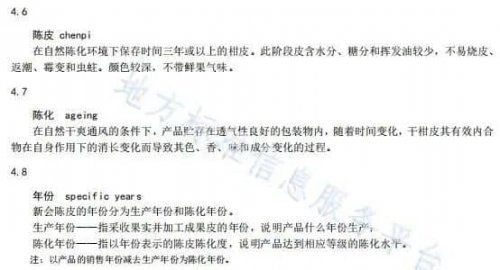 根據(jù)該標準定義:陳化是指在自然干爽通風條件下,產(chǎn)品貯存在透氣性良好的包裝物內,隨時間推移,干柑皮有效內含物通過自身作用發(fā)生消長變化,進而實現(xiàn)色、香、味與成分優(yōu)化的過程;新會陳皮的年份分為生產(chǎn)年份(采收果實并加工成果皮的年份)與陳化年份(以年份表示的陳皮陳化度,計算公式為銷售年份減去生產(chǎn)年份),清晰界定為消費者提供明確指引。
