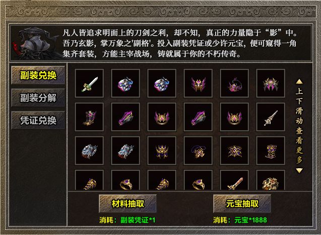 本服的“副裝系統(tǒng)”可謂擁有顛覆性創(chuàng)新。品質(zhì)由低到高可分為神秘、鋒芒、狂骨、傲視,單件屬性或許低調(diào),但當(dāng)你集齊同一品質(zhì)的劍甲或裝備套裝時,將激活強大的屬性光環(huán)——劍甲套裝專注傷害(攻擊傷害、PK增傷、穿透),裝備套裝強化生存(傷害減免、PK減傷、總血量)。