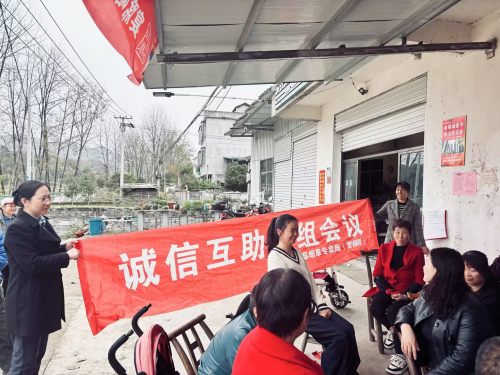 (圖為指農(nóng)戶家門口誠(chéng)信互助小組會(huì)議現(xiàn)場(chǎng) 程奧)