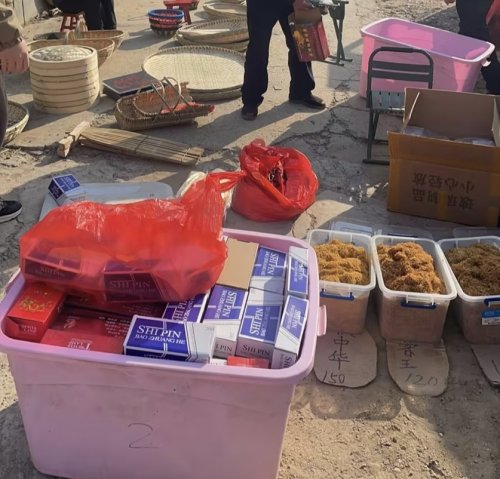 圖為在集貿(mào)市場查獲的煙絲、空煙管
