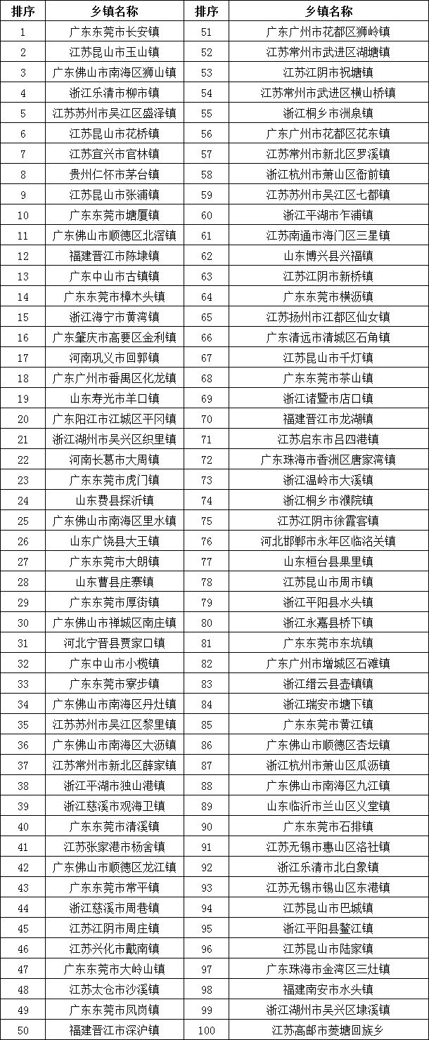 評價結果顯示,廣東東莞市長安鎮(zhèn)位居天和2025全國產(chǎn)業(yè)集群百強鄉(xiāng)鎮(zhèn)第一。排名前十位的分別是:廣東東莞市長安鎮(zhèn)、江蘇昆山市玉山鎮(zhèn)、廣東佛山市南海區(qū)獅山鎮(zhèn)、浙江樂清市柳市鎮(zhèn)、江蘇蘇州市吳江區(qū)盛澤鎮(zhèn)、江蘇昆山市花橋鎮(zhèn)、江蘇宜興市官林鎮(zhèn)、貴州仁懷市茅臺鎮(zhèn)、江蘇昆山市張浦鎮(zhèn)、廣東東莞市塘廈鎮(zhèn)。