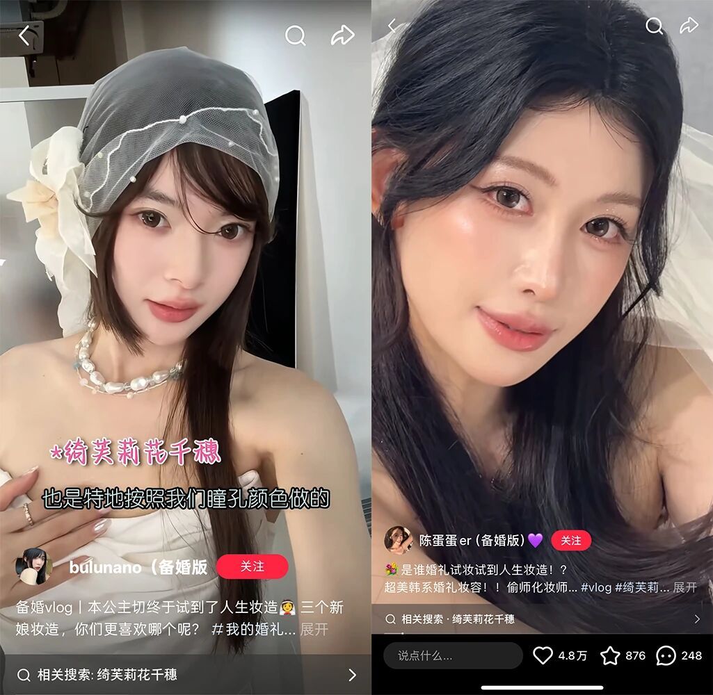 “婚禮女主的氛圍感直接拉滿”、“試妝師提示的,戴上提亮眼神,貴氣十足”......
