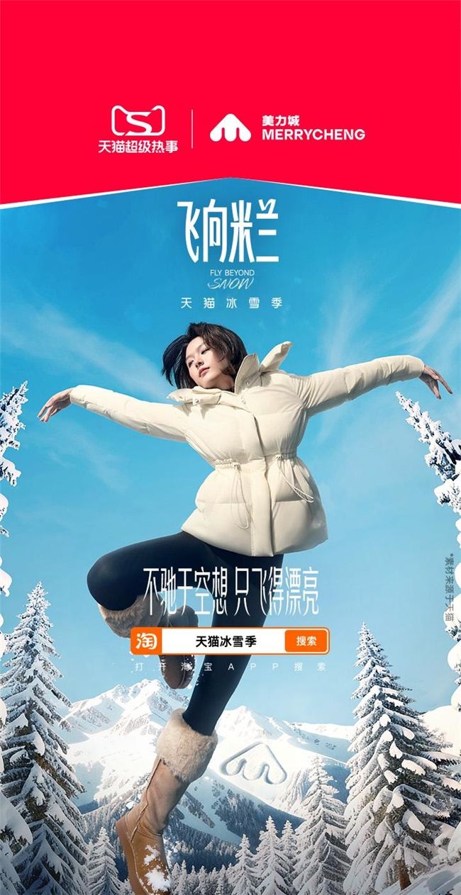 當(dāng)雪盟賽事的激情燃遍雪域,當(dāng) “飛向米蘭” 的夢想照亮寒冬,天貓冰雪節(jié)已正式拉開帷幕之際,美力城也正式宣布攜手天貓,于12月22日登陸崇禮云頂雪場「天貓慢閃品牌展區(qū)」,呈現(xiàn)一場融合品牌、冰雪與時尚的深度體驗。
