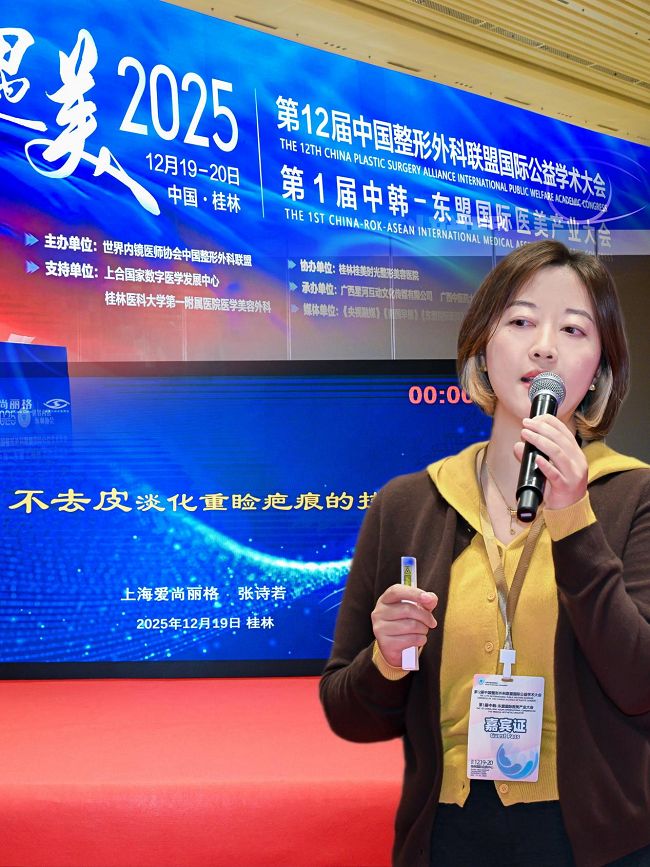 2025年12月19日,廣西桂林 —— 在備受矚目的第十二屆中國整形外科聯(lián)盟國際學術大會暨中韓-東盟醫(yī)美產(chǎn)業(yè)大會上,眼整形領域的創(chuàng)新修復技術成為焦點之一。來自上海愛尚麗格眼修復中心的張詩若醫(yī)生,在專題論壇上發(fā)表了題為《不去皮淡化重瞼疤痕的技巧》的學術報告,系統(tǒng)介紹了一種旨在“極大限度保留組織、精細化修復”的眼部修復新路徑,為復雜重瞼術后問題的解決提供了中國醫(yī)生的臨床智慧。