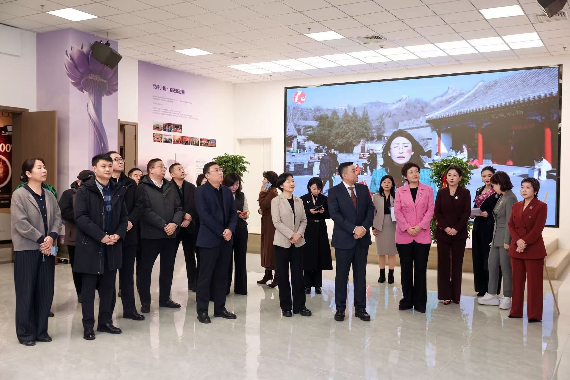 活動(dòng)以參觀文化展廳拉開序幕。在商會(huì)會(huì)長(zhǎng)李怡萱的陪同下,孟憲明主席一行系統(tǒng)了解了商會(huì)自2007年成立以來(lái)的發(fā)展歷程,并重點(diǎn)參觀了展現(xiàn)“五化雙循環(huán)”戰(zhàn)略體系和2026年戰(zhàn)略規(guī)劃的展區(qū)。李怡萱會(huì)長(zhǎng)表示,展覽全面呈現(xiàn)了女企業(yè)家群體從個(gè)體創(chuàng)業(yè)到平臺(tái)化發(fā)展的演進(jìn)歷程,是“她力量”在新時(shí)代中擔(dān)當(dāng)有為的生動(dòng)見證。
