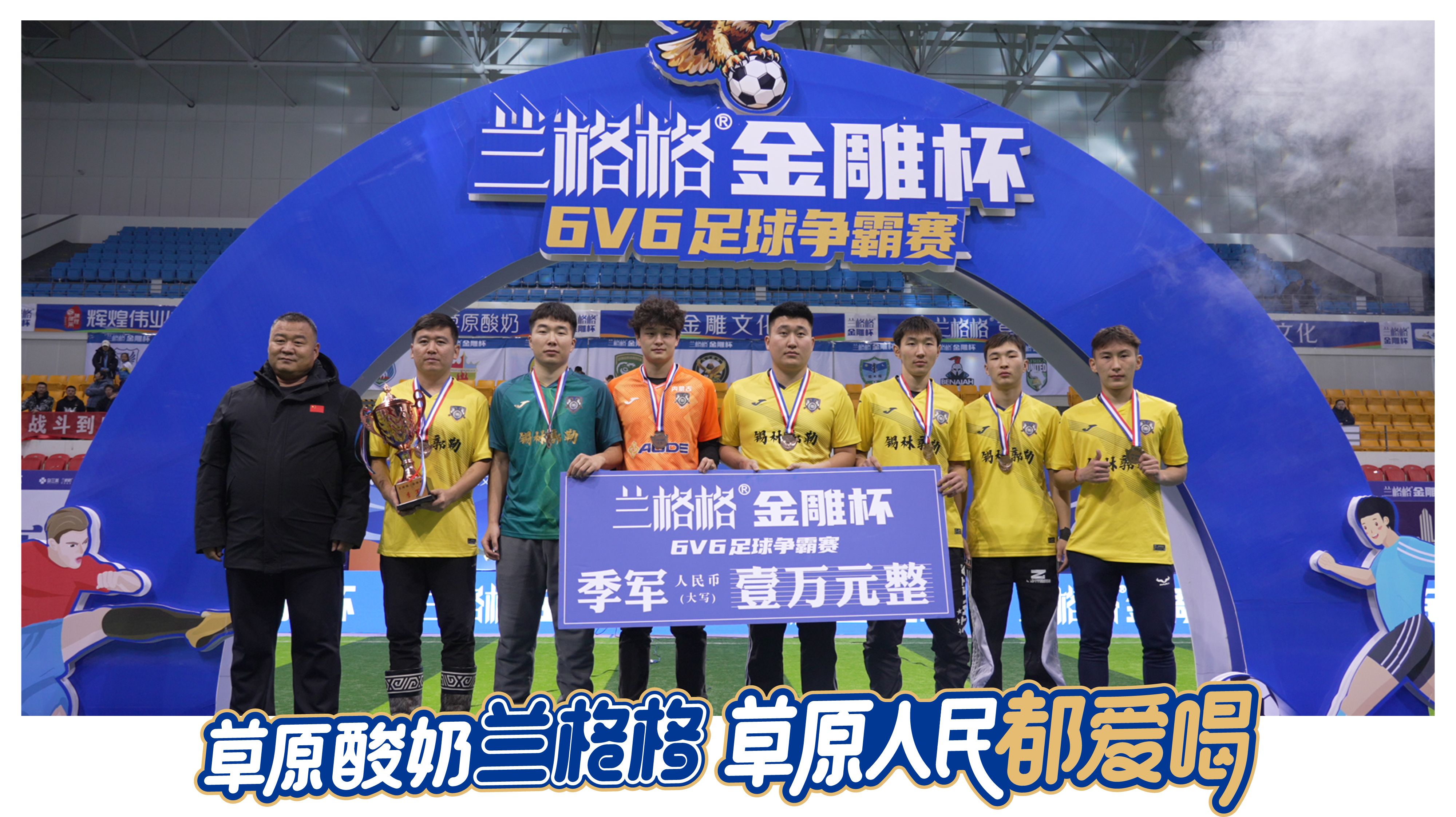隨著終場哨聲響起,為期四天的 2025 蘭格格金雕杯 6v6 足球爭霸賽于 12 月 29 日晚在烏蘭察布市體育館圓滿落幕。這場由蘭格格草原酸奶獨家冠名的賽事,匯聚 16 支隊伍 260 名球員同臺競技,以“足球+ 文旅 + 草原酸奶 ”的創(chuàng)新模式,為冬日草原注入滾燙活力。