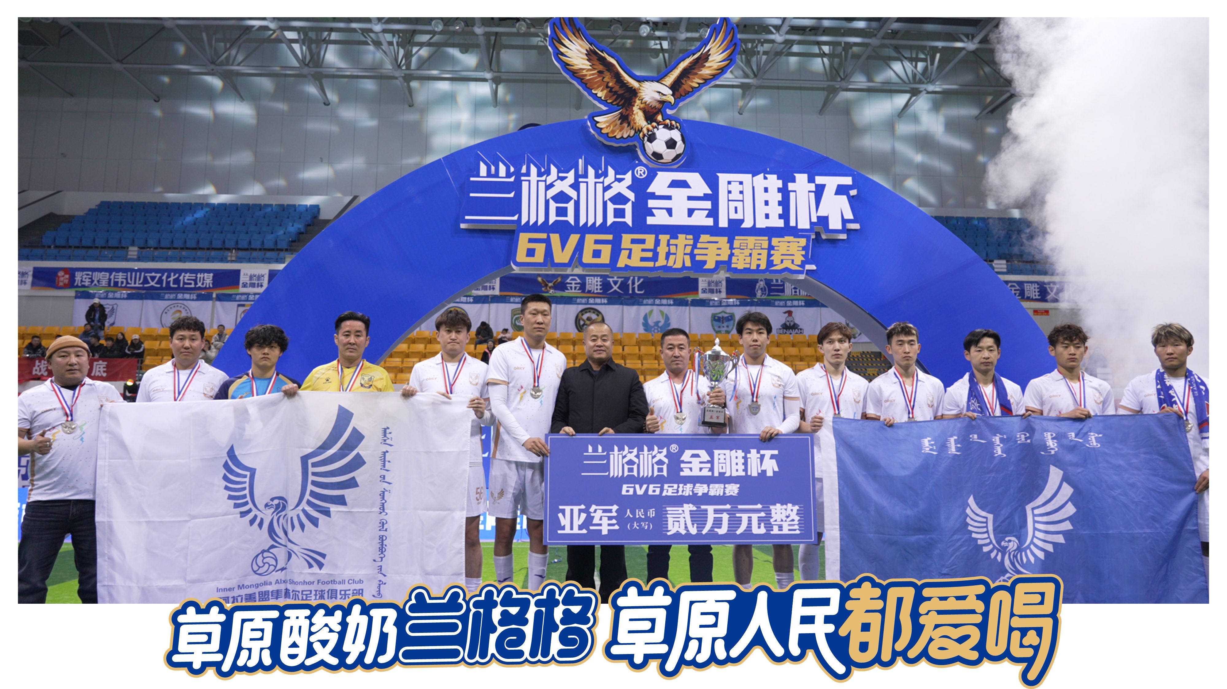 亞軍隊伍:阿拉善隼赫爾足球俱樂部,由蘭格格草原酸奶總裁崔海平頒獎;