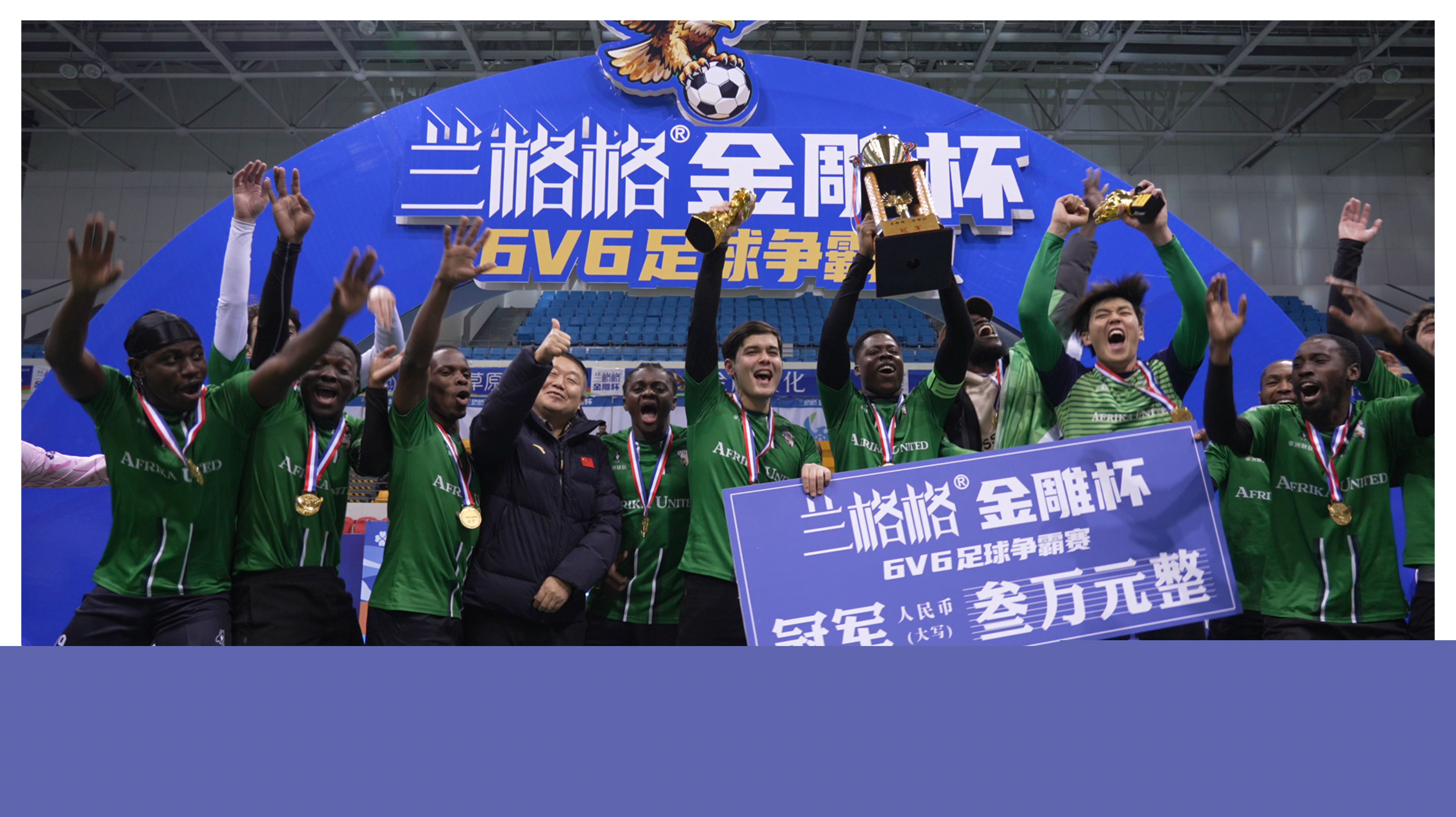 冠軍隊伍:非洲聯(lián)隊 Afrika United,由烏蘭察布市文化旅游體育局副局長黃松林頒獎。
