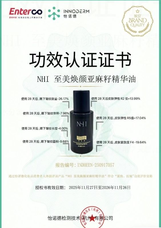 中科中創(chuàng)作為深耕亞麻籽產(chǎn)業(yè)超過十余年的國家級(jí)高新技術(shù)企業(yè),率先將亞麻籽全籽應(yīng)用的科研積累延伸至護(hù)膚領(lǐng)域。依托十余項(xiàng)國家發(fā)明專利及完整的原料、研發(fā)與臨床驗(yàn)證體系,讓NHI每膚季品牌不僅實(shí)現(xiàn)了亞麻籽從食品到護(hù)膚的價(jià)值跨越,更通過獨(dú)家滲透技術(shù),推動(dòng)以油養(yǎng)膚進(jìn)入“高效吸收、靶向修護(hù)”的新階段。