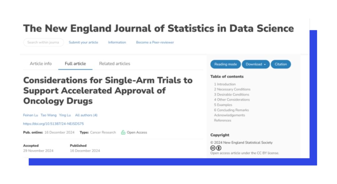 與斯坦福大學(xué)合作成果——“Considerations for Single-Arm Trials to Support Accelerated Approval of Oncology Drugs”登《新英格蘭統(tǒng)計雜志》,助力單臂抗腫瘤藥物監(jiān)管加速審批。