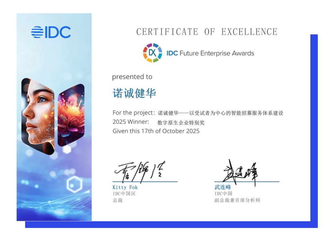 為諾誠健華搭建的智能受試者招募體系獲“2025 IDC 數(shù)字原生企業(yè)特別獎”;