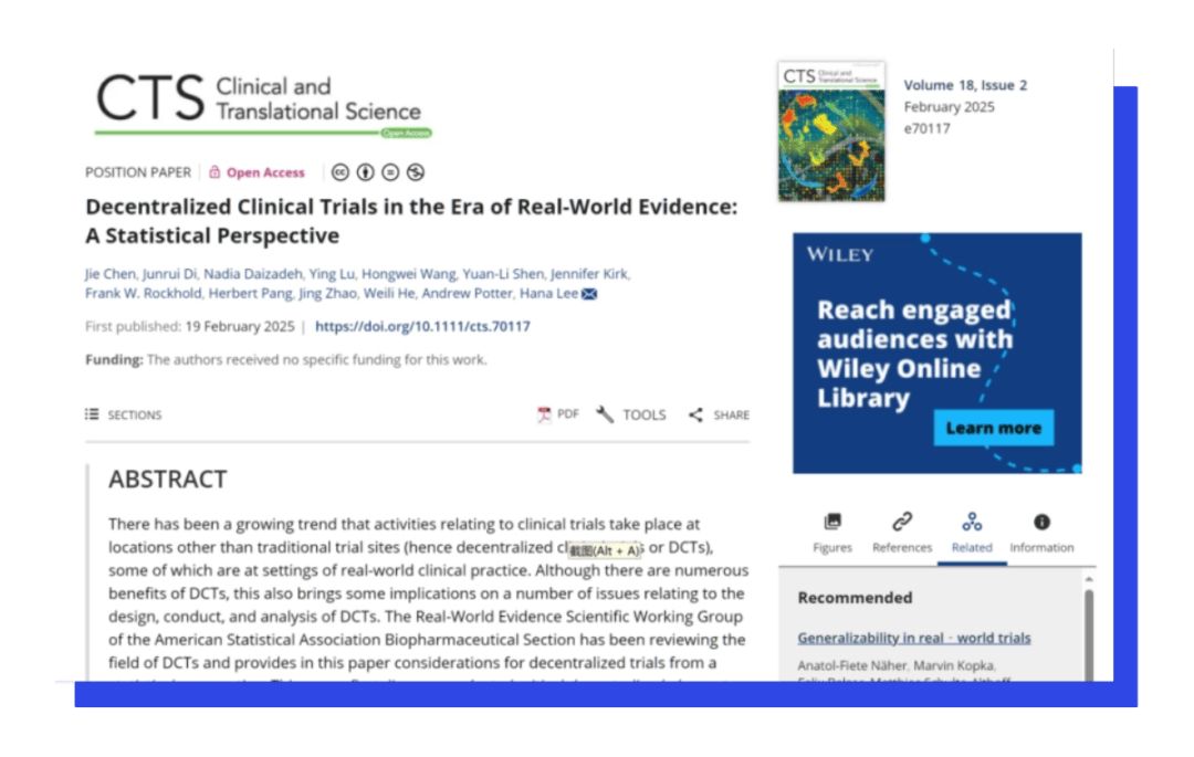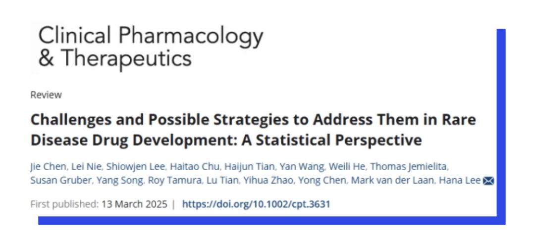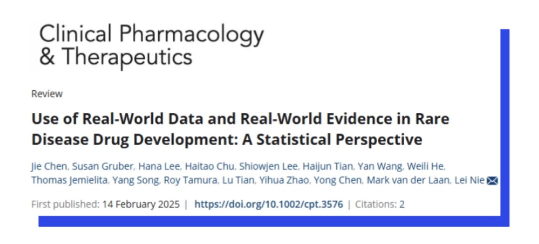 與美國統(tǒng)計學(xué)會、FDA 專家合作的研究成果發(fā)表于《Clinical and Translational Science》;為業(yè)界提供專業(yè)建議;兩篇 RWE 與罕見病藥物開發(fā)研究成果發(fā)表于《Clinical Pharmacology & Therapeutics》。