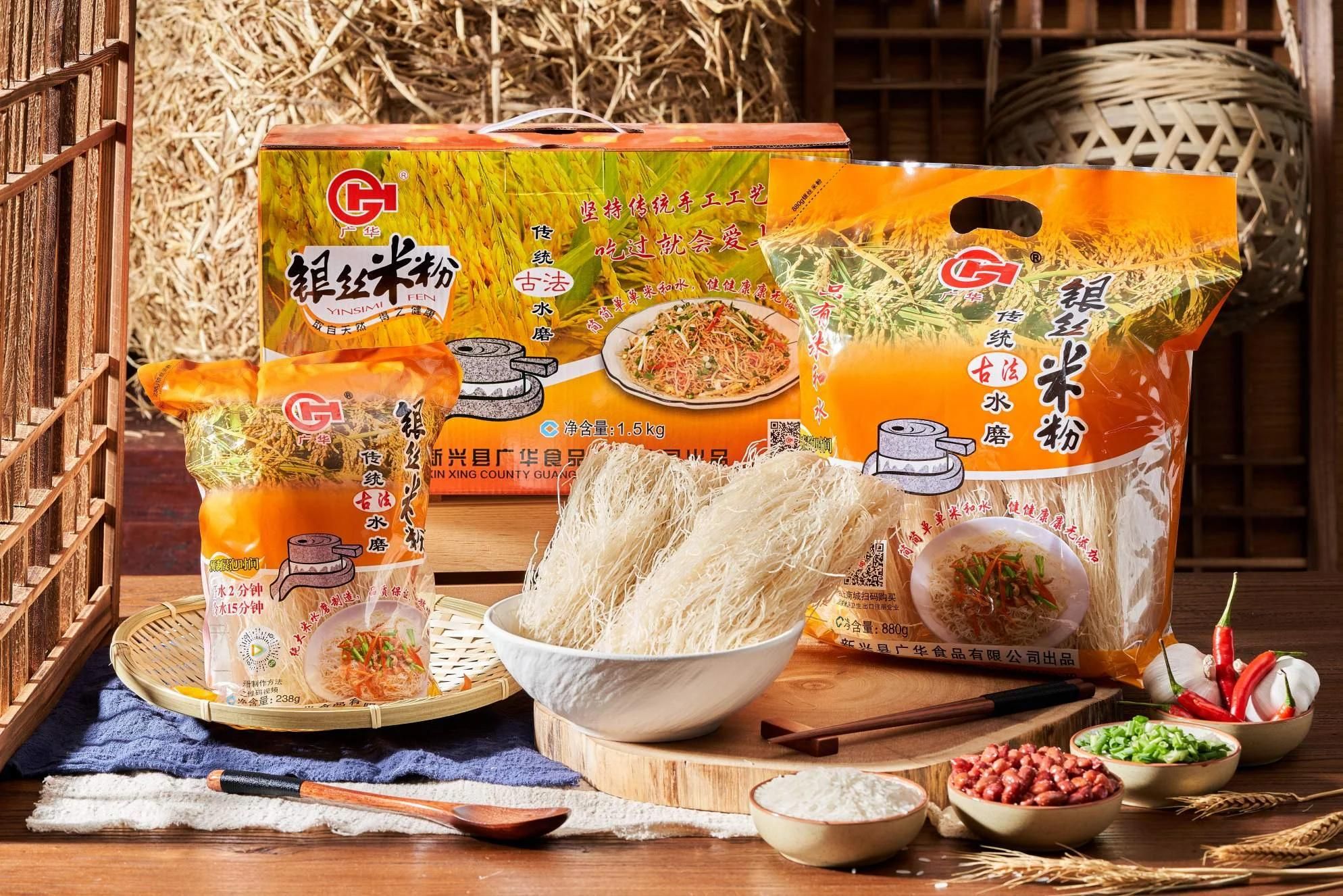 新興這片流淌著千年禪宗智慧、孕育著地道美味的土地,為廣華食品提供了深厚的文化滋養(yǎng)和得天獨(dú)厚的自然條件。相傳,唐代禪宗六祖惠能離家求法前,為報答母親養(yǎng)育之恩,取家鄉(xiāng)優(yōu)質(zhì)稻米、引澄澈山泉水,經(jīng)舂、泡、磨、蒸等多道工序制成透明如銀、米香濃郁的米粉,這份飽含孝心的手藝經(jīng)歲月沉淀,最終演變成如今的廣華食品米粉,承載著千年溫情與風(fēng)味。