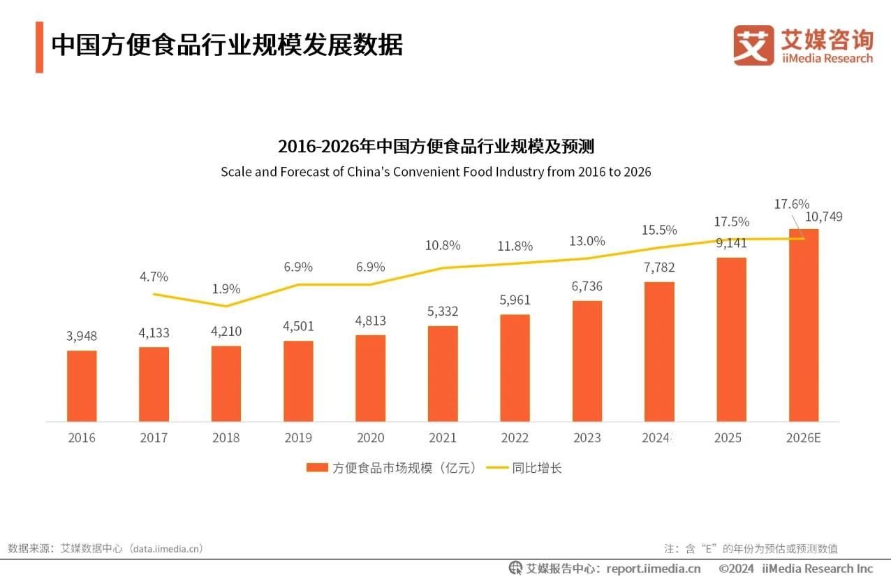 米粉因其口感柔韌、風(fēng)味多樣且易于消化,成為中國南方及東南亞地區(qū)廣泛食用的主食或特色小吃。在方便食品行業(yè)蓬勃發(fā)展的當(dāng)下,這道傳統(tǒng)美味也迎來了新的發(fā)展契機(jī)。iiMedia Research(艾媒咨詢)發(fā)布的《2024-2025年中國方便食品市場發(fā)展及消費(fèi)洞察報告》顯示,近年來中國方便食品市場規(guī)模不斷擴(kuò)大,2025年中國方便食品市場規(guī)模已達(dá)9141億元,預(yù)計2026年中國方便食品行業(yè)市場規(guī)模有望突破萬億元,這為像銀絲米粉等兼具文化底蘊(yùn)與健康基因的特色品類提供了廣闊的成長空間。