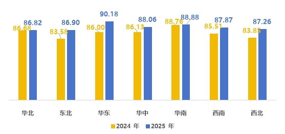 從地區(qū)分布來看,各地區(qū)熱線運行質(zhì)量得分均有所提升。其中,華東、西北和東北地區(qū)進步相對較大,分別提升4.18、3.41和3.32分。