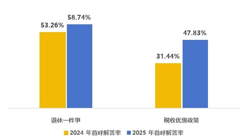 附圖 2024-2025年退休一件事和稅收優(yōu)惠政策場景首呼解答率對比