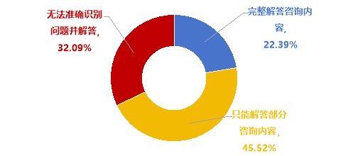 從線上端智能客服回答準確性來看,僅22.39%的城市智能客服可完整解答咨詢內(nèi)容,45.52%只能解答部分咨詢內(nèi)容,32.09%無法準確識別問題并做出相應(yīng)回答。
