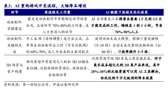 AI 逐步賦能游戲開發(fā)全流程,從早期的美術(shù)資源生成、代碼輔助編寫等輔助性工作,逐步向玩法設(shè)計(jì)、劇情架構(gòu)等核心創(chuàng)意領(lǐng)域滲透,有望持續(xù)提升游戲研發(fā)效率。據(jù)騰訊內(nèi)部統(tǒng)計(jì),AI 賦能下,光子工作室的角色動(dòng)畫制作周期縮短了 40%,部分項(xiàng)目組角色技能原型驗(yàn)證時(shí)間從 2 周壓縮至 3 天。