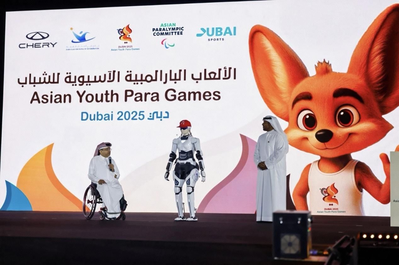 圖為奇瑞墨甲機器人為2025亞洲青年殘疾人運動會提供服務(wù)