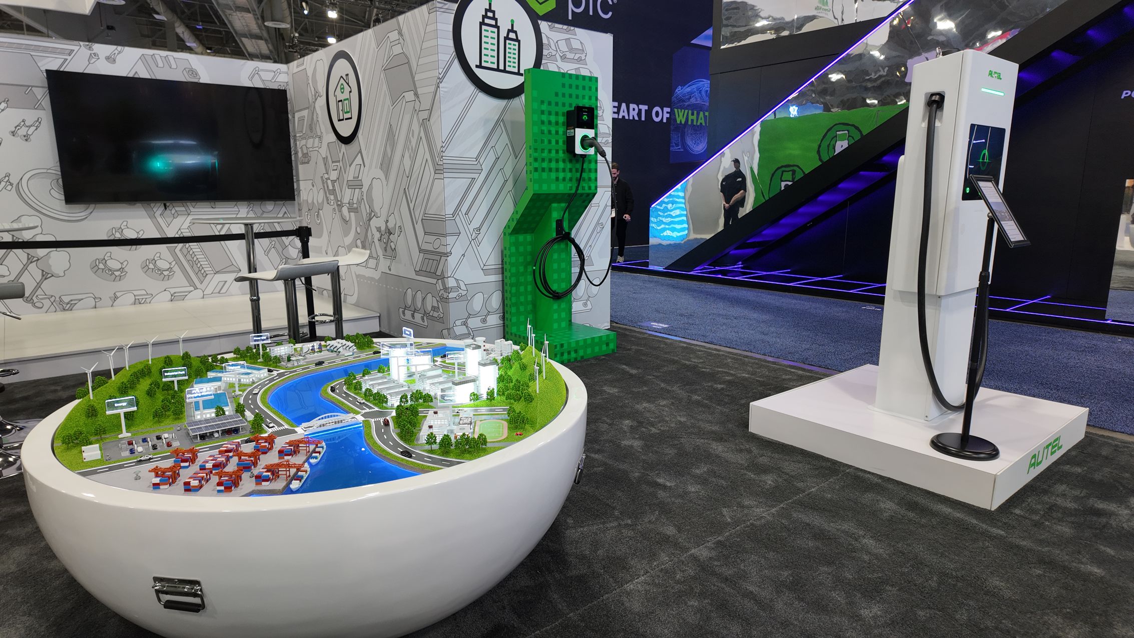 首次亮相的“未來城市全景沙盤”進(jìn)一步將這些能力系統(tǒng)化呈現(xiàn)。沙盤覆蓋高速路、光儲(chǔ)充電站、工業(yè)園區(qū)、橋梁、碼頭、校園等典型城市基礎(chǔ)設(shè)施,通過具身智能執(zhí)行體與AI調(diào)度邏輯演示能源補(bǔ)給、設(shè)施巡檢與城市運(yùn)營的協(xié)同方式,展現(xiàn)向“自動(dòng)、自治、自運(yùn)營”方向演進(jìn)的未來城市雛形。