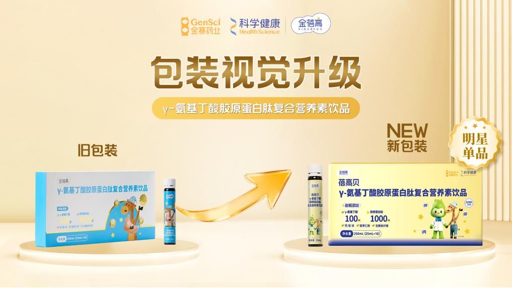 圍繞兒童“長高、睡眠、營養(yǎng)”等核心成長維度,金蓓高已構建起豐富且專業(yè)的產品矩陣。此次品牌升級亦伴隨著產品線的梳理與強化,其明星大單品γ-氨基丁酸膠原蛋白肽復合營養(yǎng)素飲品(簡稱“10支GABA水”)完成包裝視覺升級,新包裝更突出“金小竹”IP與關鍵營養(yǎng)成分信息。
