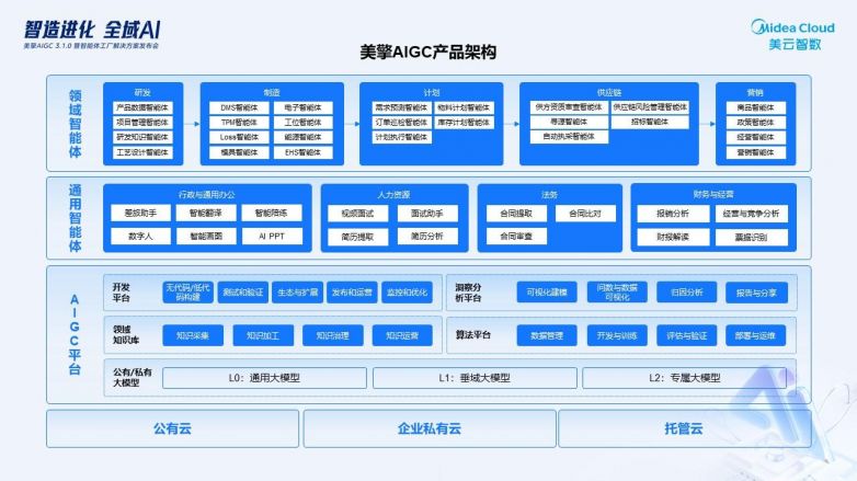 2026年1月15日,美云智數(shù)成功舉辦“智造進(jìn)化 全域AI”線上發(fā)布會(huì),正式發(fā)布美擎AIGC 3.1平臺(tái)及智能體工廠解決方案,全面展示AI技術(shù)在制造業(yè)全價(jià)值鏈的深度應(yīng)用。該方案依托美的集團(tuán)多年智能制造經(jīng)驗(yàn),旨在為企業(yè)提供從數(shù)字化到智能化的高效升級(jí)路徑。