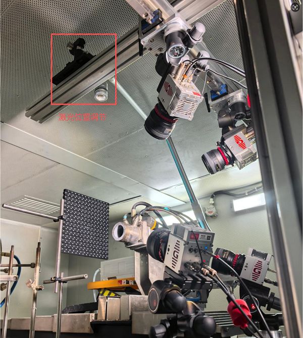 實(shí)驗(yàn)首先對(duì)燃燒噴口近場(chǎng)測(cè)量區(qū)域進(jìn)行光學(xué)定位(圖3),通過(guò)機(jī)械基準(zhǔn)與激光指示對(duì)測(cè)量體積中心位置進(jìn)行精確標(biāo)定,明確三維測(cè)量區(qū)域在噴口軸向與徑向的空間范圍,為后續(xù)多相機(jī)布置與體測(cè)量坐標(biāo)系統(tǒng)提供參考基準(zhǔn)。