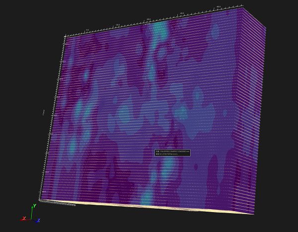 千眼狼RFlow4 PIV流場(chǎng)測(cè)量軟件具備“粒子重構(gòu)可視化”功能,重構(gòu)區(qū)域內(nèi)的粒子效果如圖11: